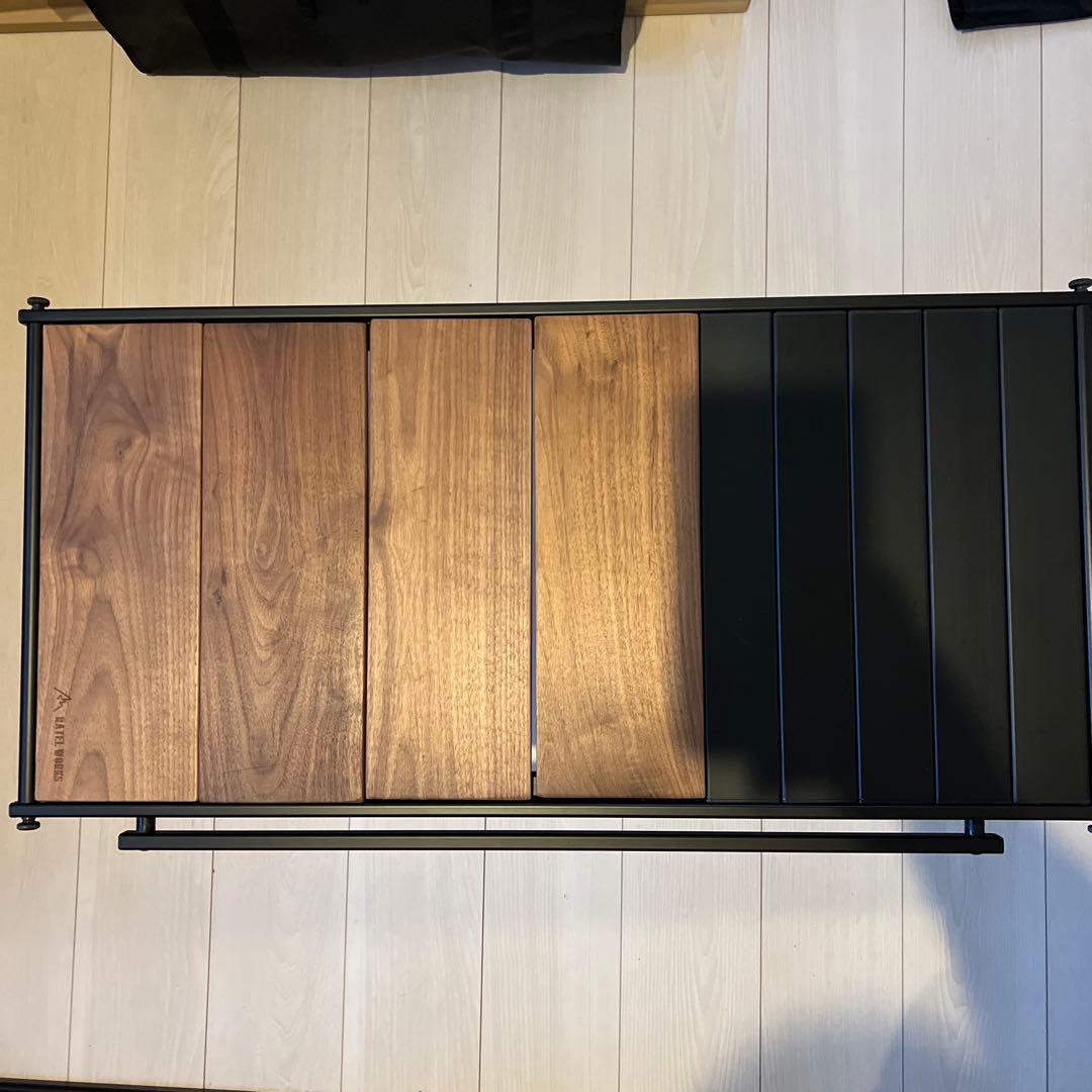 以前にこのサイトで購入させて頂きましたが、キャンプに行く機会が減った為販売させて頂きます。キャンプで使用していた為、写真で見られる様に金属部分に錆や、木の部分にも食器の跡が見られます。前の持ち主の方が塗り直して頂いておりますので、かなり深みのある木の色目になっております。写真にあるケースもお付けします。あくまでもキャンプ用品の為、ご理解頂ける方のみご購入お願い致します。追加で必要な写真等ありましたらなんなりとお申し付けください。宜しくお願い致します。cc standard shelfコンパクトかつ、シェルフとしての機能をしっかりと兼ね備えました。中板の高さも2段階あり、収納時も積載に優しいです。W980xD362(有効270)xH590収納時約W980x150x120 持ち手含まず重量 7.5kgDIVESE WORKS\rbrunt\rブラント\rsoulabo\rノルディクス\rballistics\rバリスティクス\rold mountain\rオールドマウンテン\rinavance\rインアバンス\rイナバンス\rzero cap\rゼロキャップ\rLED CAP\rsomabito\rdeviseworks\rデバイスワークス\rNATAL DESIGN\rナンガ\rガーシー\rgaacy\rNANGA\rアシモクラフツ\rasimocrafts \rアシモクラフト \rスノーピーク\rneru design works\rネルデザインワークス\rsanzokumountain\rサンゾクマウンテン\rマウンテンリサーチ\rballistics\rサンゾクマウンテン\rざぁーすカーミットチェアバリスティクス ミニランプシェードZEROPOD38ASINOPLATEBALLISTICS MINI LAMP SHADE HALF TRACK PRODUCTS ハーフトラックプロダクツゴールゼロ GOALZERO バリスティクス MINI LAMP SHADEアシモクラフト DEVISEWORKS デバイスワークス ネルデザインワークス ピノワークス トランクゼロ インアバンス ソマビト オールドマウンテン ザンゾクマウンテンネイタルデザインnataldesign